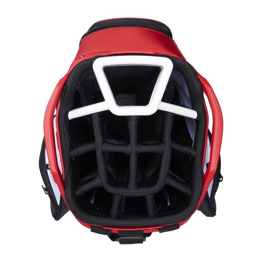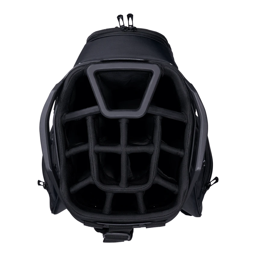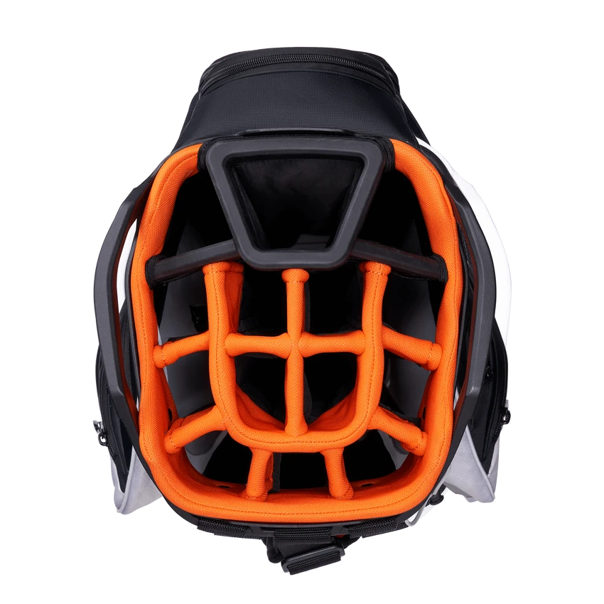 The all-new ORG 14 takes organization and compatibility to the next level. Upgraded with Lowrider technology, ORG 14 integrates with most modern push-carts and provides a secure walk with two push-cart straps and a refined cart strap pass-thru. Revamped pockets include a rapid access pocket, insulated cooler pocket and accommodating apparel pockets. ORG 14 provides all the storage and organization you need for your round – and then some.