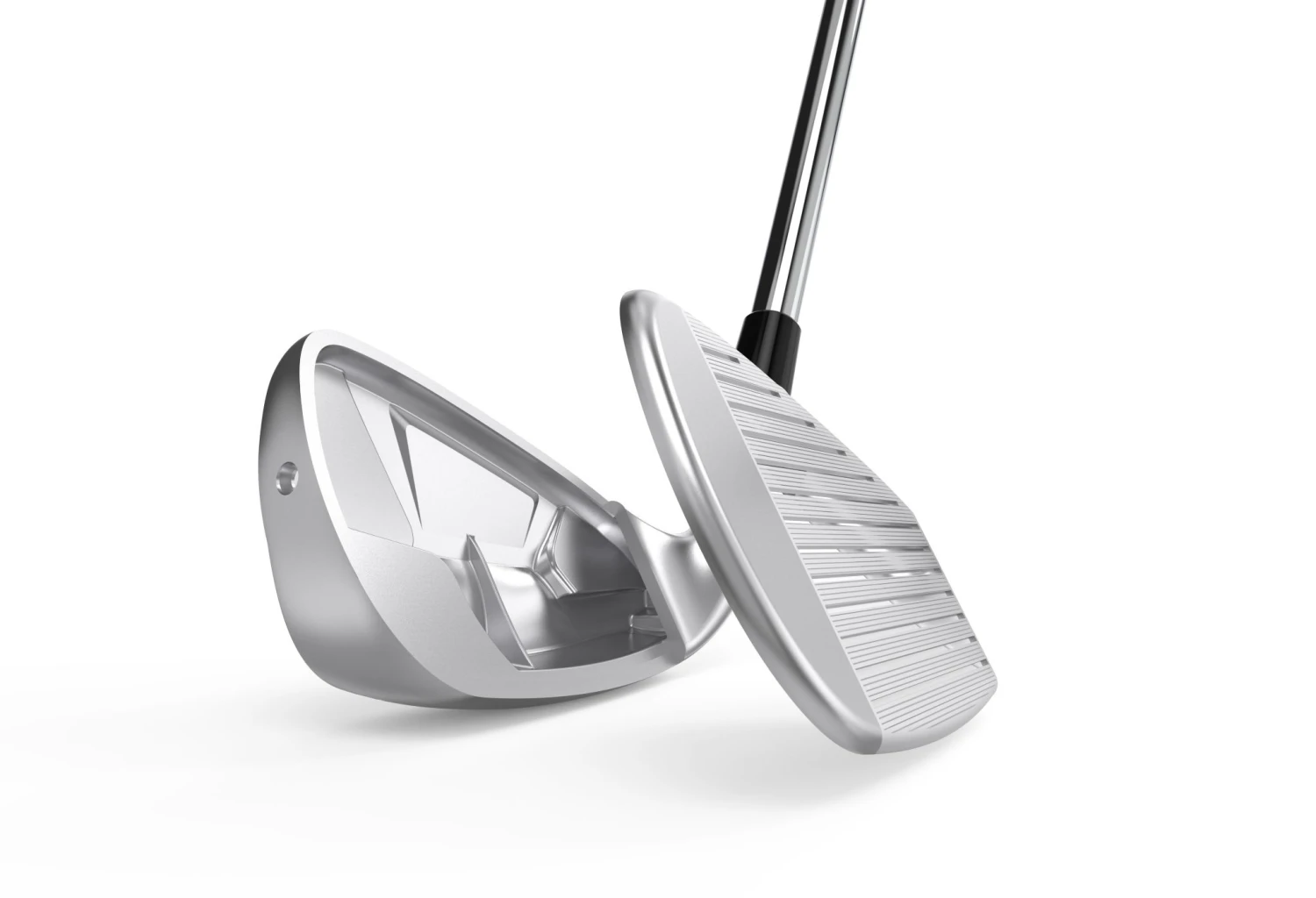 Hollow long irons (4i – 7i) provide more forgiveness with lower, deeper weight distribution, while cavity back short irons (8i – DW) provide more control when attacking the pin.