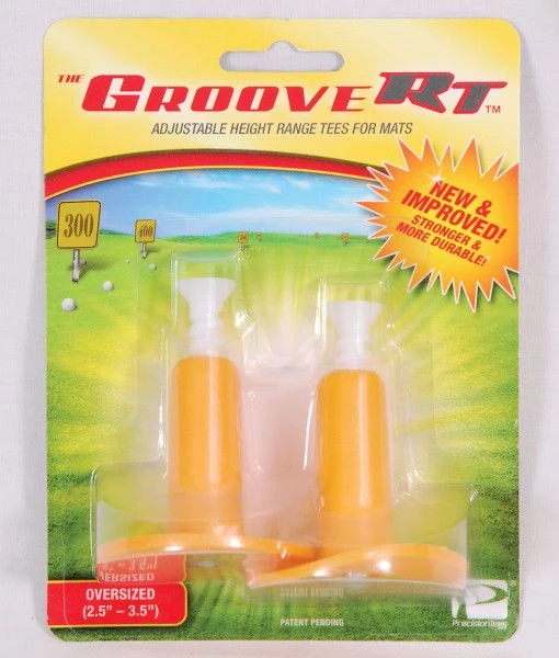 When you hit off the mats at the practice range, do you find it difficult to find a rubber tee thats exactly the right height? Thats why Groove Range Tee is perfect for you! Its an adjustable height practice range tee for use with mats. The Groove Range Tee adjusts up and down to your desired height sot hat you can adjust the height of the tee to your swing and NOT your swing to the height of the tee.