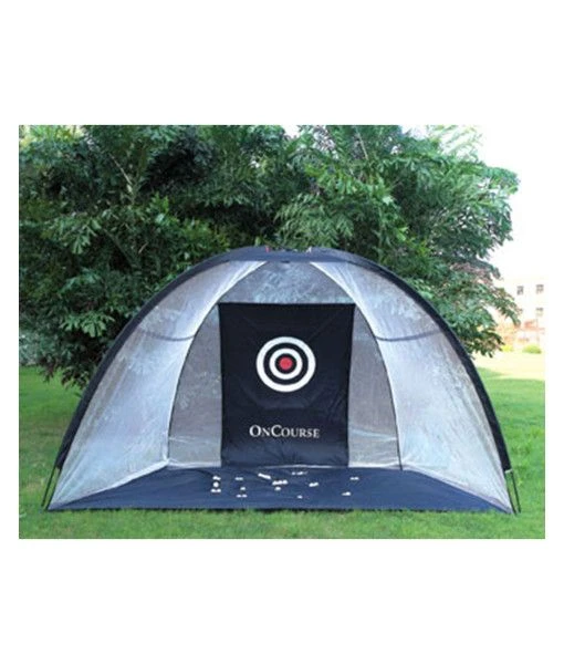 The Oversize Driving Net has a large opening for added stability and an easy set-up for convenient use. The breathable nylon fabric promotes quick drying and safe storage. Folds down into a compact size for easy storage. Includes carry bag, 2 fiberglass shock-cord poles, 5 ground stakes, one large tarp